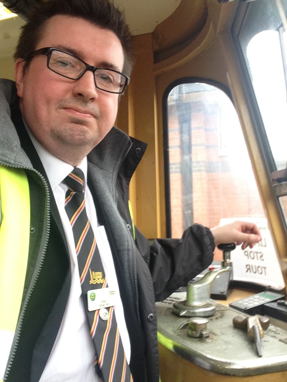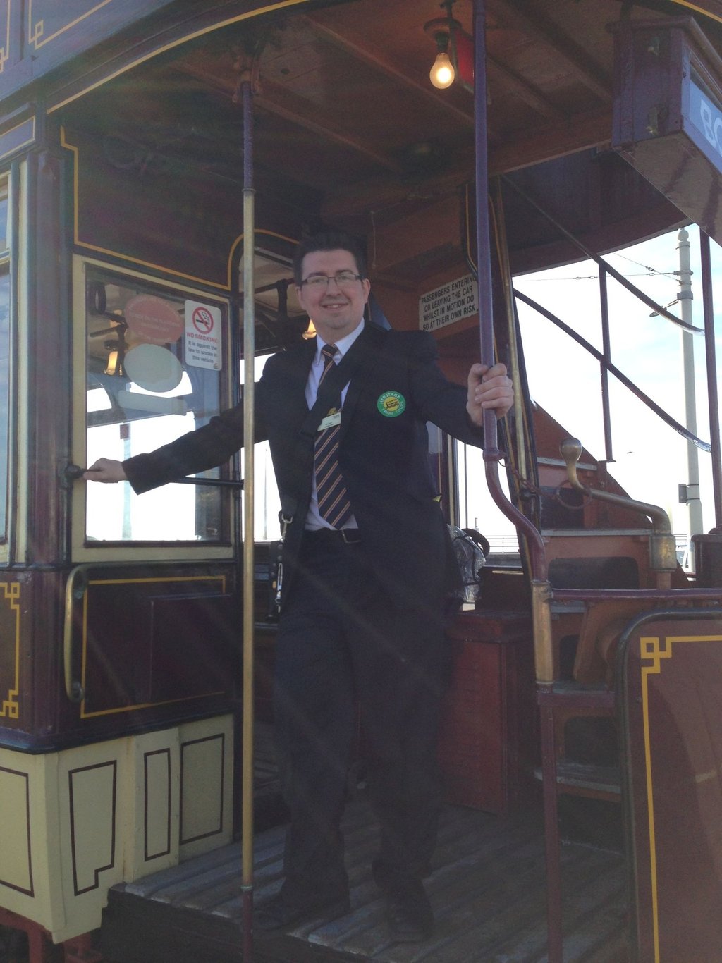 Voluntary work, usually in the heritage transport sector, has usually kept me busy away from the day job. Even before I was a bus driver, I joined Amberley Museum in Sussex as a volunteer bus conductor and it was there I first met a young trainee called Catherine Pope, who is now the Tracing the Rails Production Supervisor (and will soon be my wife!) My love of Blackpool trams never abated and, in 2015 whilst living back in the North of England, I applied to work for the charity “Blackpool Heritage Tram Tours” who were the custodians of the old trams I knew from childhood. Starting as a conductor and working my way up to driver, I felt incredibly proud to know that little boy who once stood on tiptoes watching tram drivers with wide eyes trying to figure out the controls now not only had answers to his questions, but was licensed to drive the trams he fell in love with over 20 years previously.