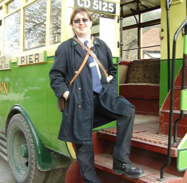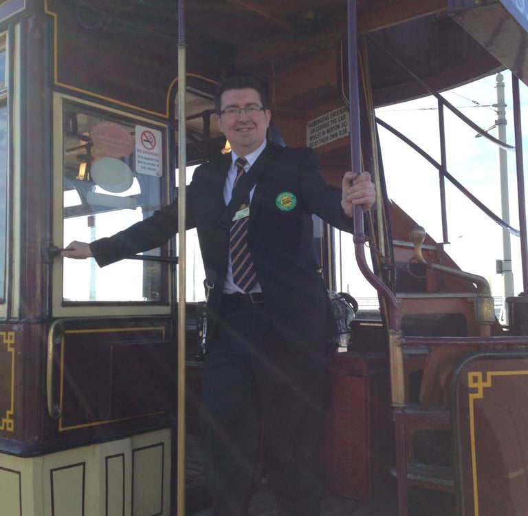 I’ve always been interested in transport in one form or another. My Dad was (and still is) very keen on transport and so as a child I spent a lot of time at heritage railway lines, vehicle rallies and museums. My earliest memories are of holidays or day trips to Blackpool and falling in love with the trams there. They were a novelty these massive green and cream machines clanking and purring along the track on the sea front and I was hooked. Their ornate ceilings, wood paneling and plush, comfortable yet tired padded seats spoke of a more opulent time of travel. The drivers had mysterious brass handles and a large wheel in their cramped, narrow cabs and the younger me had so many questions: How do you drive a tram? Why does Blackpool seem to be the only place that has them? Why are there different designs? How old are they, and how do they keep them running? From about the age of 5, I became a bit obsessed with trams, if I’m honest! In the days before the internet the only way I could learn the answers to my questions was by standing on tiptoes looking into the driver's cab of these magnificent machines or timidly asking the crew lots of questions whenever the opportunity arose!